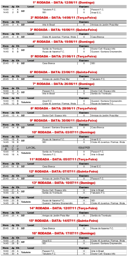 - Aberta as Inscrições pa a V Copa Empresárial de Itapema 20111. Treinos todas as
